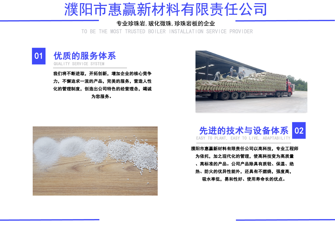 濮陽市惠贏新材料有限責(zé)任公司是一家專業(yè)生產(chǎn)保溫材料的廠家,位于范縣王樓鎮(zhèn)工業(yè)區(qū),專業(yè)生產(chǎn)珍珠巖、珍珠巖保溫板、玻化微珠等保溫建材,主要用于外墻保溫、屋面保溫、園藝等領(lǐng)域,產(chǎn)品暢銷國內(nèi)外,深受客戶一致好評。我們擁有優(yōu)秀的產(chǎn)品和服務(wù),在成立以來都以誠信對待客戶! 公司擁有各類專業(yè)人才,技術(shù)人員50人,運輸40人,專業(yè)的十多輛運輸車輛。產(chǎn)品銷售網(wǎng)絡(luò)遍及國內(nèi)20多個省市,十幾年來,通過公司的不懈努力和誠信經(jīng)營理念,產(chǎn)品質(zhì)量可靠,價格合理,深受廣大客戶認可和好評! 我公司本著以客戶為本,客觀實際,創(chuàng)新發(fā)展的原則,在追求完美極致的道路上努力打造行業(yè)新標(biāo)準(zhǔn),我公司憑借卓越的產(chǎn)品質(zhì)量、完善的服務(wù)標(biāo)準(zhǔn)、良好的口碑信譽、竭誠歡迎廣大客戶前來洽談業(yè)務(wù)!...